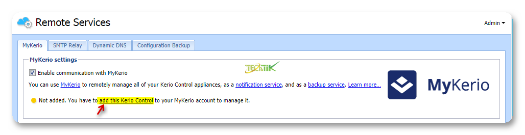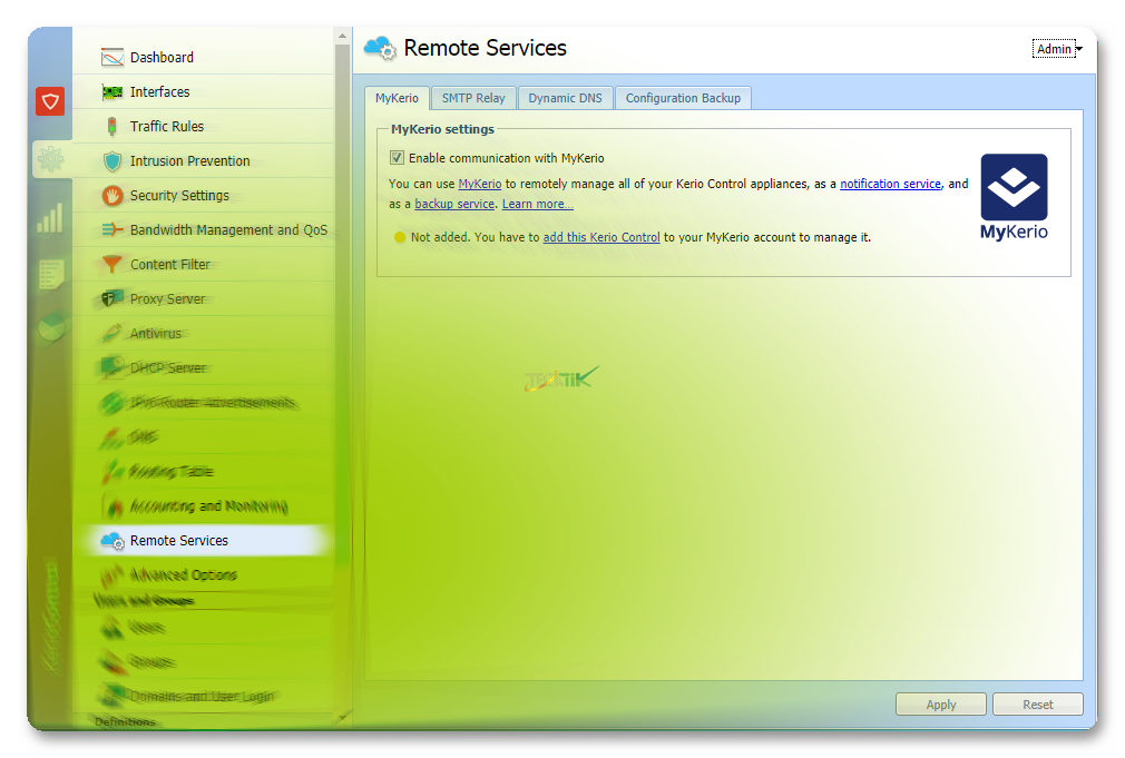 برای اینکه بتوانید ارتباط بین Kerio Control و MyKerio را برقرار کنید از صفحه مدیریتی Kerio Control وارد قسمت Remote Services شوید.