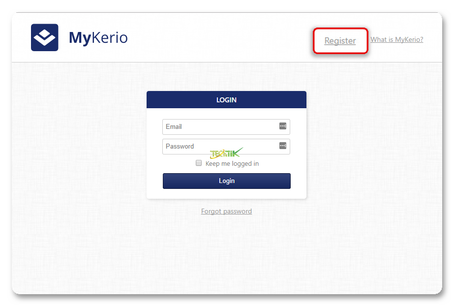 در همین سربرگ بر روی لینک add this Kerio Control کلیک کنید تا وارد صفحه MyKerio شوید. یا اینکه میتوانید مستقیما وارد آدرس https://my.kerio.com/login شوید.