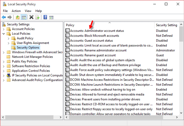 Security Settings >> Local Policies >> Security Options