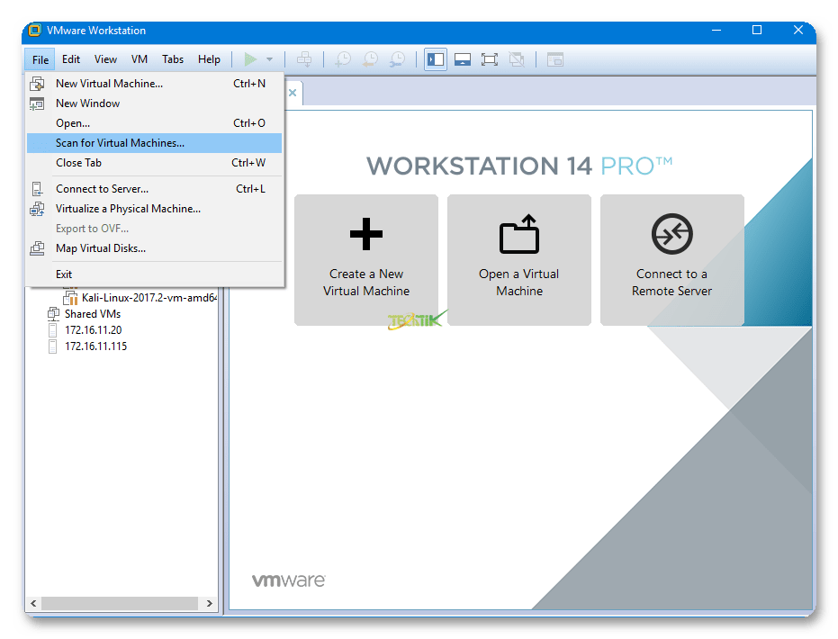 برای استفاده از این قابلیت از مسیر File => Scan for Virtual Machine کلیک کنید و مسیر ماشین مجازی را مشخص کنید تا به جستجوی ماشین های مجازی در مسیر مشخص شده گردد.