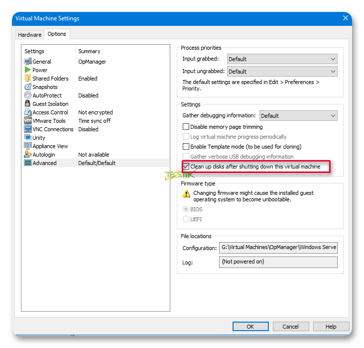 برای فعال کردن این قابلیت بر روی ماشین مجازی مورد نظر کلیک راست و گزینه Settings را انتخاب کنید، وارد سربرگ Options شوید و سپس وارد قسمت Advanced شوید و تیک گزینه Clean up disks after shutting down this virtual machine را فعال کنید.