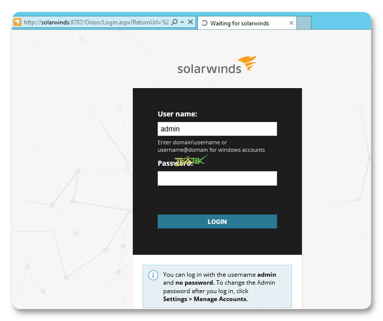 پس از نصب و پیکربندی وارد صفحه لاگین Solarwinds خواهید شد.