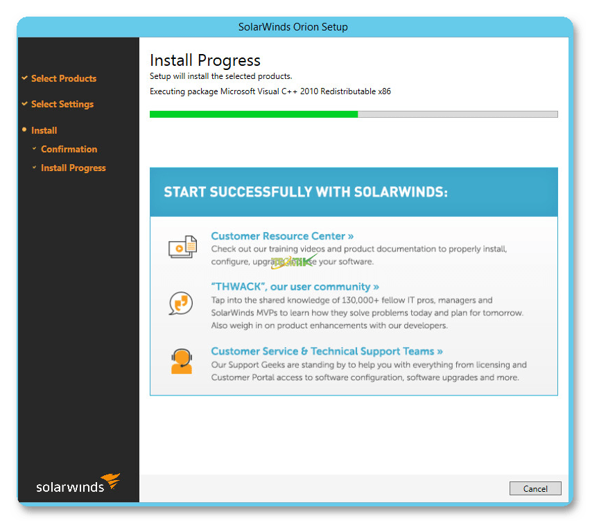 بعد از انجام عملیات بالا پنجره SolarWinds Configuration Wizard باز خواهد شد که تنظیم دیتابیس ها، وب سایت، اجرای سرویس ها