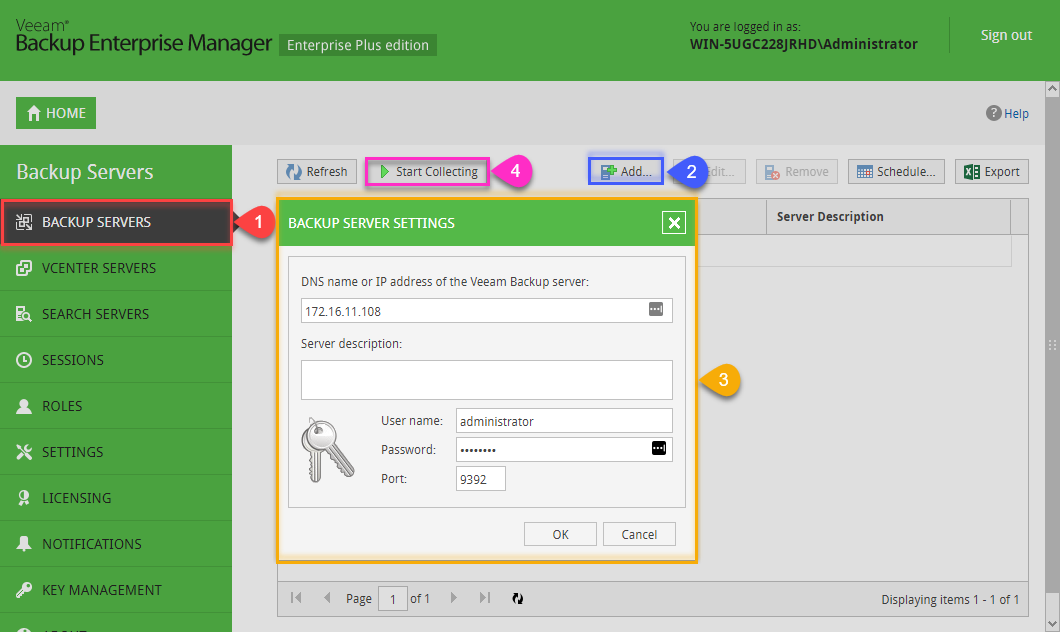 در ابتدا باید سرور های Veeam Backup را اضافه کنیم.