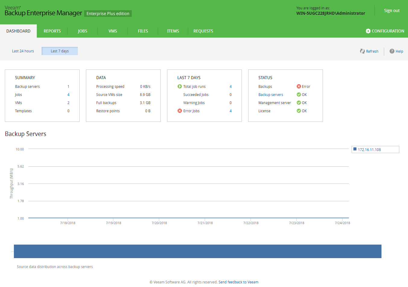 خلاصه ای از jobs، VM، وضعیت، حجم انتقال اطلاعات و … را می توانید مشاهده کنید.