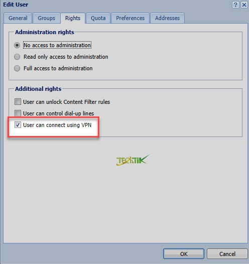 به این نکته توجه داشته باید که حتما باید به کاربر دسترسی VPN را بدهید تا اجازه VPN زدن را داشته باشد.