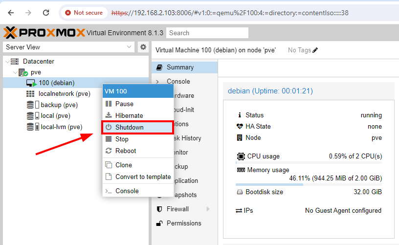 قبل از ایجاد یک کلون از ماشین مجازی خود، ابتدا باید آن را خاموش 🔴 کنید. روی ماشین مجازی خود کلیک راست کرده و گزینه “ shutdown” را انتخاب کنید.